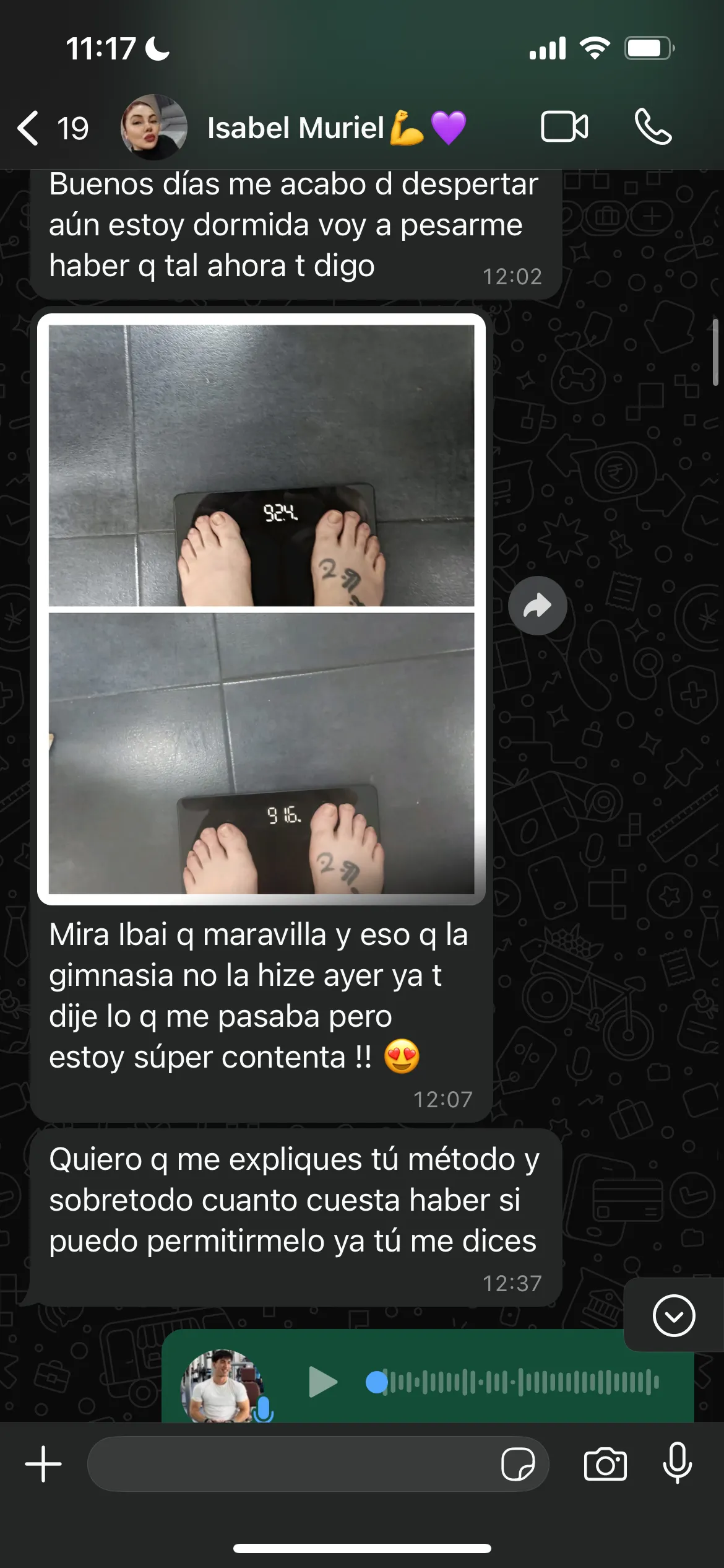 habló conmigo y le explique todo bien claro, confío en el proceso y 90 días después acabó con un abdomen plano, eliminando toda su celulitis, y volviendose a reconocer cuando se miraba al espejo cada mañana